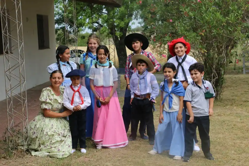 El miércoles amaneció con algunas gotas y un cielo azul oscuro hacia el Oeste que presagiaban tormentas. Nada de eso ocurrió para fortuna de los organizadores del acto bien criollo. Aunque los hombres y mujeres de campo rogaban agua, manifestaron que “espere a que pase la fiestita, después sí que se llueva todo”.En el evento que se desarrolló en la Escuela 110 “Semana de Mayo”, la 64 “Rivera Indarte” y la 112 “El Viejo Pancho”. María Luz Pedroza, Directora de la 110, entrevistada por ElDía, señaló que “ se trata de un establecimiento que tiene sus años y que se encuentra ubicada en las calles 4 y 7, pegada a la capilla y a pocos metros del Centro Cívico de Colonia El Potrero. Cuento con 6 alumnos, cinco nenes y una nena. Tengo desde jardín de 4 años hasta sexto grado. Soy personal único y junto a otras docentes decidimos festejar el día de la tradición”. Contó que la mayoría de los chicos son “hijos del personal que trabaja en la Estancia Las Margaritas y una nena que vive sobre la ruta 16”. Agregó que “este año pudimos volver a la presencialidad en una escuela que tiene dos aulas muy grandes, razón por la que podemos trabajar sin problemas”. Eso sí “cuando llueve el camino, 5 kilómetros, desde la 136 a la escuela se torna intransitableJulia Farabello, docente, de la Escuela 112 “Viejo Pancho” sobre la vieja ruta 42 y calle uno, conduce a Colonia Elía y Concepción del Uruguay, en un terreno cedido por la Estancia San Martín, contó que tiene 18 alumnos “ en un año que aumentó la matrícula, aunque la gente va y viene, las familias se trasladan a uno u otro trabajo en el campo, y a veces se hace difícil que un chico termine su ciclo escolar en un mismo establecimiento. Es así que en un año, como este, sumas 18 y al siguiente 8”. Destacó que contar con “18 chicos es un lindo número para trabajar. Desde hace unos meses lo hago junto a una docente con la cual atendemos el nivel inicial y todos los grados. Lo hacemos en un ambiente muy lindo, tranquilo, rodeado de la naturaleza”. Contó que los chicos estudian en dos aulas. “Una destina para el nivel inicial y el primer ciclo; mientras que el segundo ciclo trabaja en la otra aula”. Julia comentó que en tiempos de lluvia “podemos arribar a la escuela porque el camino es de ripio, aunque tres familias que viven en el interior de la colonia no pueden mandar a sus chicos por el estado de los caminos”.Sobre la fecha, 10 de noviembre, señaló que en “ estos lugares-por el campo- es muy especial, siempre se festeja con mucho ahínco, entusiasmo y tratamos de hacerla lo más lindo posible para que ellos lo disfruten” La Tradición María Luz señaló que es “valorar lo nuestro y los chicos no pierdan las costumbres que vienen desde nuestros mayores, que no pierdan el sentido de la tradición. Por eso-acota, junto a Julia (Farabello) y Karina Larrosa ( Titular de la Escuela 64), coincidimos en que esto es un gran festejo para nosotros y los chicos”. Señaló que en el “campo,los gurises tienen todas las vivencias, andar a caballo, ayudar a sus padres, ensillar, ayudar en tareas menores, algo que los chicos del pueblo no tienen por la urbanidad misma”. Julia opinó en el mismo sentido y agregó que “los chicos sienten orgullo de esa cotidianidad y del sentido de pertenencia que tienen por el campo, algo que nosotros queremos demostrar a la vez de resaltar que la vida en el campo es tan importante como los que habitamos la ciudad”Coincidieron en que las “clases en el mundo rural, particularmente la baja matrícula, es más personalizada. Nos conocemos mucho con los alumnos y con las padres que colaboran permanentemente para mantener la escuela, arreglando y mejorando las instalaciones en forma permanente”. El acto Al costado de la escuela se montó un “rancho armado con ramas, troncos y paja”. Dentro del mismo una “pava gigante, tachos antiguos de leche, una guitarra, un bombo, cuadros alegóricos a la tradición, asientos de madera, en la búsqueda de montar un escenario que semeje a lo que fueron los primeros años de la Patria de una tradición que hay que mantener”. Las maestras estaban vestidas de chinas, al igual que alumnos y alumnas. Después de palabras de las docentes se entonaron las estrofas del himno nacional y se celebraron distintos eventos relacionados a la tradición con los chicos/as como protagonistas con padres y familiares que disfrutaron tanto o más que los chicos.Cabe destacar que el escenario fue armado por padres y vecinos ese mismo día, comenzaron a las cinco de la mañana, para que todo esté listo a las 11 de la mañana. También hubo números musicales a cargo de artistas locales y cartelería con infografía que hacía referencia al Día de la Tradición, comidas y costumbres bien criollas.