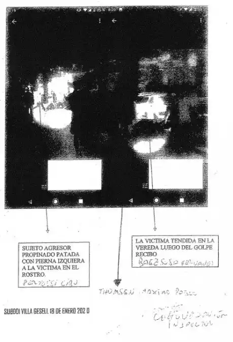 Mientras los diez rugbiers acusados por el asesinato de Fernando Báez Sosa se encuentran encerrados en una celda de la alcaidía del Penal de Dolores, la investigación avanza para esclarecer el grado de participación que tuvo cada uno de los imputados por “homicidio premeditado” en la golpiza mortal. Infobae accedió al expediente de la causa donde se encuentran las imágenes que revelan el rol que tuvieron Máximo Thomsen (20) y Ciro Pertossi (19), los dos rugbiers más complicados por el crimen. Verónica Zamboni, la fiscal a cargo del caso, continúa reconstruyendo y recolectando pruebas de lo que sucedió el sábado 18 de enero antes de que culmine el plazo (martes 18 de febrero) que tiene para solicitar o no la prisión preventiva para los rugbiers. Las cámaras de la zona, y las filmaciones realizadas por testigos del hecho con sus celulares resultan piezas fundamentales para terminar de armar el rompecabezas de lo que fue aquella fatídica madrugada en Villa Gesell. A casi tres semanas del crimen, se instruyeron siete cuerpos de expediente con 1.400 fojas, se tomaron más de 20 declaraciones testimoniales y hubo cuatro jornadas de ruedas de reconocimiento. Las imágenes del expediente al que accedió Infobae certifican que las cámaras de la zona registraron un tumulto de gente a las afueras del boliche Le Brique a las 04.59 y detallan que entre las 05.07 y las 05.10 llegó primero un móvil de la policía y luego una ambulancia para asistir a Fernando que yacía en el suelo. Minutos antes había sucedido la brutal golpiza. Sin embargo, los registros fílmicos esenciales provienen de un celular de un testigo que grabó el momento final del crimen. Fueron las primeras imágenes que se conocieron del homicidio; Infobae las publicó el mismo 18 de enero. Allí, los 49 segundos de duración del video son suficientes para señalar a Ciro Pertossi y Máximo Thomsen en el momento en el que ejecutan a Fernando Báez Sosa y se retiran de la escena del crimen. En las imágenes se visualiza “un grupo de personas eufóricas, quienes propinan golpes a un sujeto que se encontraba tendido boca arriba sobre la vereda ESTE de Avenida 3”, detalla el expediente que resalta que Fernando se encontraba “en estado de inconsciencia, con su torso superior desnudo y pantalón de jeans color azul". El documento detalla que “se observa que se le aproxima un joven del sexo masculino, de unos 20 años de edad aproximados, de contextura robusta, cabellos rubios, pantalón bermuda de color oscuro, camisa azul manga corta y zapatillas de color negra, quien le propina golpe a la víctima y sale de imagen, haciendo constar a esta altura que este sujeto resulta ser el mismo que se observa en imágenes correspondientes al interior del local Le Brique, momento que lo retira el personal de seguridad”. La descripción corresponde a Thomsen, que tras pegarle una patada en la cabeza se retira caminando. En el mismo registro se logra visualizar el rol que tuvo Ciro Pertossi: “Propina patada con pierna izquierda a la víctima en el rostro”, se describió en el expediente. Efectivamente, en la filmación se lo ve a Pertossi -vestido con un jean azul y camisa blanca- pateando la cabeza de Fernando y luego huyendo a paso acelerado hasta salir de escena. Máximo Thomsen y Ciro Pertossi son los más complicados de los 10 imputados, acusados de ser los autores materiales del crimen. Una testigo los identificó como “los que más pegaron; le pisaban y le pateaban la cabeza. Los otros le pegaban piñas por todos lados a Fernando”, reveló la chica que presenció el hecho, quien agregó que Thomsen le respondió a un tercero que lo incitaba a matar: “Quedate tranquilo que a este me lo llevo de trofeo”. Otros dos testimonios que se sumaron a la causa, de dos chicos que estuvieron presentes en el momento del asesinato, también lo ubicaron a Thomsen como uno de los más agresivos: “Decía: ‘Dale, cagón, levantate’. Cuando Fernando estaba en el piso, el único que vi que le pegó en la cabeza fue el chico de camisa negra”, señaló uno de ellos. (Fuente: Infobae)