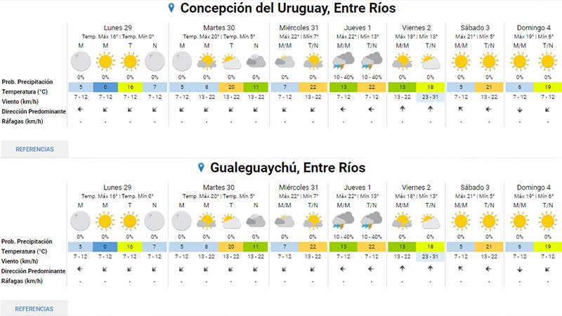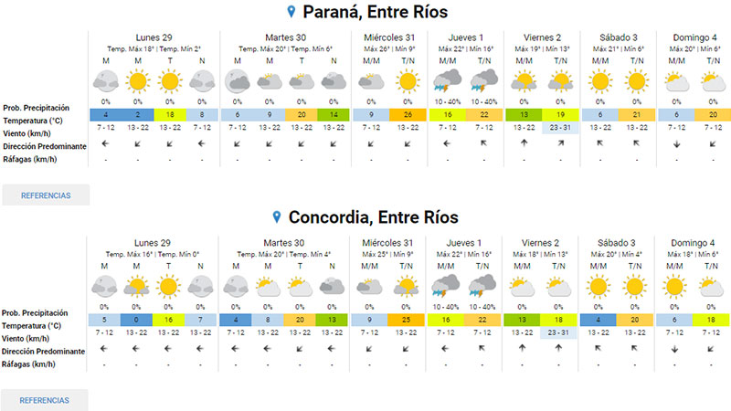 Tras el pronunciado descenso en los registros térmicos que comenzó el sábado y que hoy generó marcas muy bajas en Entre Ríos, que en el caso del sur provincial descendieron a cero grado, el viento norte volverá a ganar protagonismo y las temperaturas se recuperarán muy pronto en el país.