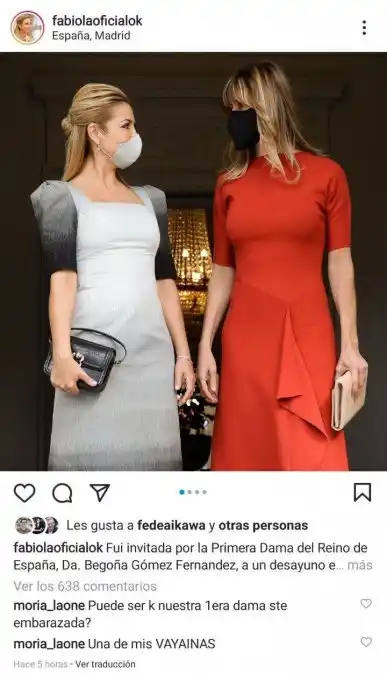 Todos los ojos están puestos en Fabiola Yáñez y Alberto Fernández durante su gira europea. Sin embargo, por fuera de su labor política, la Primera Dama fue furor en las redes por un comentario de Moria Casán que causó revuelo. Durante su paso por España, Fabiola se mostró muy contenta junto a la Dra. Begoña Gómez Fernández, esposa del primer mandatario español y, pese a que su look fue sobrio, la "One" señaló un detalle que había pasado desapercibido por muchos. Fue justamente en una foto que Fabiola compartió en sus redes donde Moria escribió: "Puede ser que nuestra primera dama esté embarazada?", preguntó la conductora de lengua filosa. Para cerrar agregó: "Una de mis vayainas", recordando el paso de Yáñez por su programa y el término que utilizaba la diva para referirse cariñosamente a sus colegas.