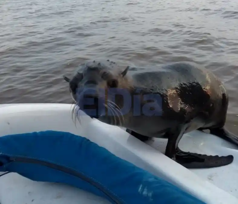 En la tarde del jueves, un pequeño lobo marino sorprendió a los tripulantes de una lancha que retornaban de pescar en el río Uruguay.