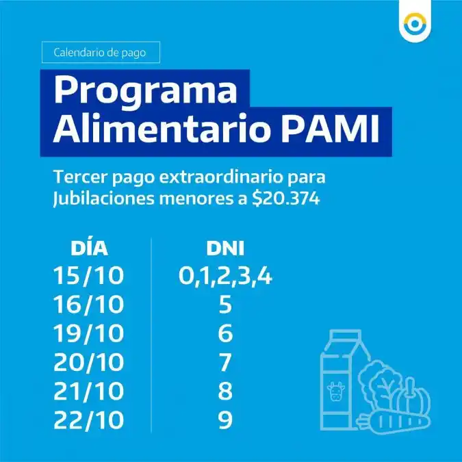 PAMI Gualeguaychú confirmó el cronograma de pago del programa alimentario. El mismo corresponde sólo a las personas beneficiarias que ya venían recibiendo el bolsón y que por la cuarentena la distribución tuvo que ser cancelada. El pago único extraordinario será de $1600 y el monto se incorpora como concepto al recibo de haberes a través de un convenio con ANSES. 550.000 son los afiliados incluidos en el programa en todo el país El cronograma indica la fecha de depósito, lo que no significa que deban concurrir ese día sin excepción. El monto quedará en la cuenta y podrá ser extraído en el momento que la persona así lo decida. Por consultas, los beneficiarios pueden comunicarse al 432340 o 433164 de lunes a viernes de 7 a 14 hs. CALENDARIO DE PAGO