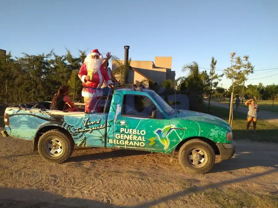 Pasadas las cinco de la tarde del miércoles 23 de diciembre, las sirenas de la policía y los Bomberos Voluntarios de Pueblo Belgrano comenzaron a sonar con insistencia. ¿Un incendio? ¿Un accidente? ¿Una catástrofe? Nada más lejos. El intenso ruido de los patrulleros y autobombas no anunciaban nada malo, sino una de las noticias más esperadas; sobre todo por los más pequeños: ¡Papa Noel había llegado a Pueblo Belgrano! A bordo de una camioneta de la Municipalidad, y escoltado por las fuerzas de seguridad, Papa Noel recorrió todas las calles de la vecina localidad, y el alboroto alertó a todos los niños sobre el acontecimiento que estaba pasando. Muchos chiquilines, inclusive, lo esperaron en la vereda ansiosos alertados por las sirenas. Cuando los niños veían llegar a Papa Noel, algunos miraban obnubilados, como no creyendo lo que estaban viendo; mientras que otros corrieron a su encuentro. Eso si, todos se llevaron su regalito: un paquetito con golosinas que todos disfrutaron.