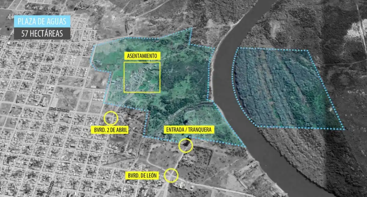Los motivos y factores por los cuales el terreno se presta para los asentamientos es por la cercanía que hay con los servicios, pero además también porque al ser cercano y estar pegado a todo lo urbano, los que están allí con sus viviendas precarias siguen teniendo el acceso a la vida social de la ciudad. Las relaciones, las amistades, las actividades y los trabajos siguen estando a mano porque no están viviendo desprendidos de la comunidad. Esto último, si o si debe resolverse con un plan habitacional efectivo, que permita que todos los que están en un asentamiento –no sólo el de Plaza de Aguas sino todos– puedan vivir en un lugar digno y urbanísticamente proyectado a futuro, con una planificación adecuada que permita no sólo el crecimiento de Gualeguaychú sino también el desarrollo. Aclarado esto último, aún nos queda una pregunta: ¿cómo se puede explotar de manera adecuada Plaza de Aguas? Una obsesión de antaño Sería injusto decir que ningún intendente de los últimos 30 años ha pensado en Plaza de Aguas. Desde Luis Leissa a Martín Piaggio, todos han hablado y pensado en este lugar. Sin embargo, y como decía al principio, el lugar sigue casi inmutable. En los últimos días, Plaza de Aguas volvió a estar en agenda debido al debate en el Concejo Deliberante por la compra de Parque del Sol. Uno de los argumentos esgrimidos por el Ejecutivo municipal es que de esta manera se podía unir ese balneario con el mentado espacio natural de zona norte. Sin embargo, en este punto surge un problema: Plaza de Aguas y Parque del Sol no son linderos, sino que están separados por un terreno de 40 hectáreas que pertenece a un privado. Ahora bien, ¿es necesario del balneario que tiene su ingreso por Ruta 136 para que el predio de zona norte pueda ser explotado como corresponde? La respuesta es no: Plaza de Aguas tiene un potencial propio.