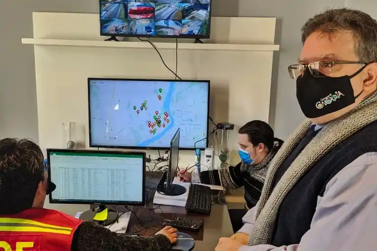 Lo que se dio en llamar “Sala de Situación” funciona en el segundo piso del edificio anexo al palacio municipal. Se trata de una dependencia donde siempre hay un número de 4 personas dedicas a una serie de tareas, con las que se busca optimizar algunas de las medidas implementadas en el marco de la pandemia de COVID 19. Allí, por ejemplo, se vigilan las cámaras que monitorean los accesos a la ciudad de Concordia. Tanto los habilitados oficialmente como los que están actualmente cerrados. En esa misma sala también se procesan los datos que se van recabando en los controles de los accesos habilitados, conformándose una base de datos que permite determinar el día y horario que una persona ingresó a la ciudad. Como así también llevar un relevamiento de los lugares de los que provienen cada uno de los ingresantes, para que -en caso de ser necesario- se cumpla la cuarentena correspondiente. Es por eso que otra de las grande pantallas de esta oficina muestra en tiempo real la ubicación geográfica del domicilio en el que se aloja cada una de las personas que proviene de lugares con circulación de COVID 19. Lo que también permite establecer el lugar al que periodicamente deberán realizarse los controles de rutina. Del papel a un escaneo por celular En diálogo con el diario Río Uruguay, el intendente Alfredo Francolini contó que, cuando comenzó la pandemia, los datos de las personas que entraban a Concordia se anotaban en una hoja de papel, lo que luego era volcado en una planilla de Excel. Con ese sistema se trabajo por un corto tiempo, hasta que un vecino llamado Carlos Kupervaser, propietario de una empresa de software local, cedió un sistema que permitió agilizar la recepción, carga y administración de los datos recabados en los puestos de control. Francolini señaló que la propia empresa ayudó a optimizar el sistema, “al punto que hoy, con un simple celular, escaneamos el código digital (o de barra) de cada DNI”, con lo que se obtiene de inmediato la identidad de cada persona, a lo que se suman “una serie de preguntas que nosotros realizamos”, y todos esos datos “se cargan en una base y acá lo vamos monitoreando”. Es así que, en el caso de quienes llegan de lugares con circulación comunitaria, “se les hace firmar una declaración jurada, donde aceptan que (mientras cumplen con el aislamiento obligatorio de 14 días) periódicamente serán sometidos a un control por parte de la Cruz Roja, de la Secretaría de Salud y de las fuerzas que están colaborando con nosotros”. Francolini también destacó que las cámaras colocadas en los ingresos no habilitados (como la y Griega o la Ruta 4) han permitido el seguimiento de varios vehículos que pensaban que podrían ingresar sin que nadie los estuviera observando. “Esta gente cree que está burlándose de la autoridad y en realidad se están burlando de la mayoría de la sociedad, a la que estamos cuidando con todas estas medidas sanitarias implementadas”. Ofrecimiento a la provincia En su última visita a la ciudad de Concordia, el lugar fue mostrado al gobernador Gustavo Bordet, “que se mostró muy entusiasmado” afirmó Francolini, al punto que puso al tanto de este trabajo a la Ministra de Gobierno, Rosario Romero, tras lo cual el propio intendente de Concordia, a través de una videoconferencia “le mostramos el sistema tanto a la Ministra Rosario Romero, como al comisario Gustavo Maslein”, titular de la Policía de Entre Ríos. El intendente de Concordia reconoció que desde la municipalidad se ofreció la herramienta a la provincia, con el objetivo de que se instrumente el mismo sistema de monitoreo en accesos como el puente Rosario-Victoria, el túnel subfluvial, el puente Zarate- Brazo Largo o el límite con la provincia de Corrientes. Francolini apuntó que eso permitiría que “un intendente, de cualquier ciudad, estuviera al tanto sobre el ingreso de un automóvil por el puente Zarate-Brazo Largo, por citar un ejemplo, avisándosele que viajan tantas personas que van rumbo a su localidad”, lo que optimizaría el procedimiento para que esas personas, una vez que lleguen a destino, “cumplan con el aislamiento preventivo y minimizar las posibilidades de contagio de COVID en la provincia.” (Diario Río Uruguay)