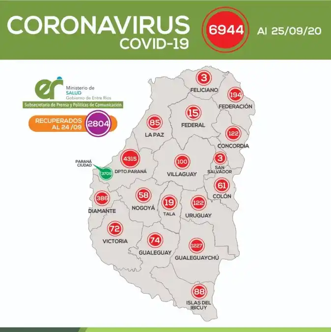 Este viernes se registraron 186 nuevos casos de coronavirus en Entre Ríos