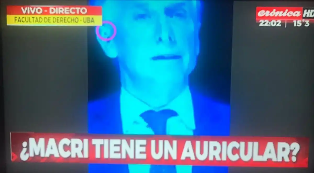 Todos se preguntaban lo mismo. ¿Mauricio Macri tenía puesta una cucaracha durante el debate? Inmediatamente aparecieron tomas, fotos, capturas, un sinfín de imágenes en las redes sociales. Pero, ¿es cierto o no? Lo cierto es que cuando los equipos de campaña acordaron cuando se discutieron las condiciones técnicas del debate que cada uno pudiera tener un telepronter. Es decir, un dispositivo que les permite leer a través de una pantalla un texto de forma fluida y natural. “¿Qué motivo habría para que alguien tuviera un micrófono sí se tiene un telepronter?", remarcó uno de los miembros del equipo de campaña de un candidato que estuvo durante la organización del debate. Sin embargo, desde las redes no pararon de exponer que el presidente tenía un auricular en su oído. ¿Habrá roto las reglas?