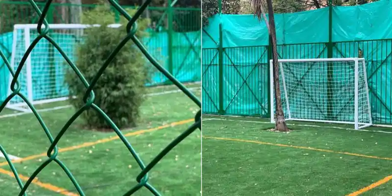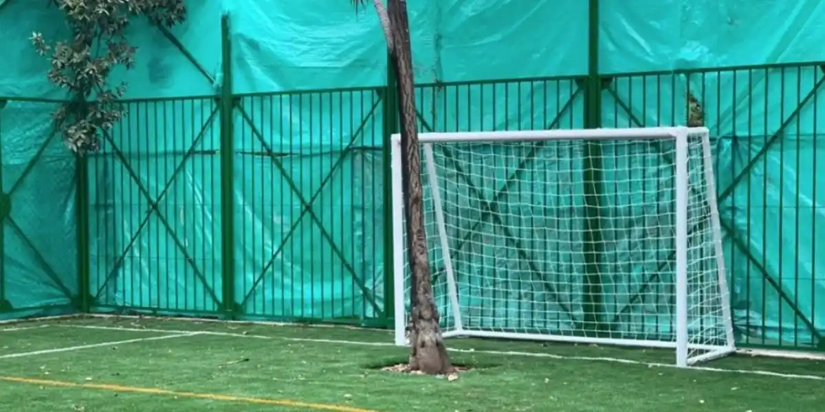 Realizaron una cancha sintética pública, pero dejaron dos árboles delante de cada arco