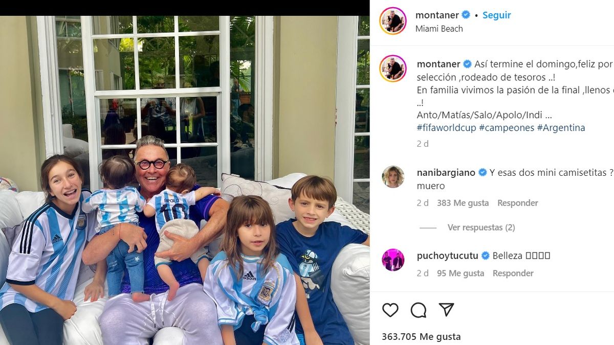 En la foto se puede ver a todos los nietos del cantante argentino-venezolano que festejó el triunfo de la selección en Qatar rodeado de amor, con todos los niños vestidos con ropa de Argentina, y un detalle llamó la atención.