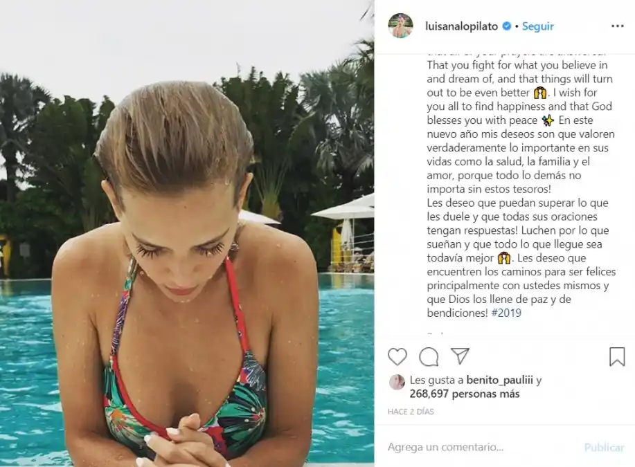 Como todos los años, Michael Bublé y Luisana Lopilato armaron las valijas y partieron rumbo a la playa para recibir en familia el año nuevo. Atenta siempre a sus redes sociales, la actriz sorprendió el último día del 2019 con un llamativo posteo en el que hizo un balance que, para muchos de sus seguidores, dejaba la puerta abierta a una posible crisis con su marido. “En este año nuevo, mis deseos son que valoren verdaderamente lo importante en sus vidas como la salud, la familia y el amor, porque todo lo demás no importa sin estos tesoros”. “Les deseo que puedan superar lo que les duele y que todas sus oraciones tengan respuestas”. “Luchen por lo que sueñan y que todo lo que llegue sea todavía mejor”. “Les deseo que encuentren los caminos para ser felices, principalmente con ustedes mismos y que Dios los llene de paz y bendiciones”. En la foto que acompañó el posteo se la puede ver a Luisana al borde de una pileta y rezando, a diferencia de las postales familiares con las que suele acompañar sus mensajes de las Fiestas. No fueron pocos los seguidores de la actriz que se preguntaron y volcaron sus dudas en las redes sobre si las reflexiones dejaban entrever una posible crisis con el canadiense. “¿Por qué escribiste eso?”, indagó el propio Bublé, al darse cuenta de que fueron muchos los medios que titularon que la pareja estaba en crisis. Dos días después, Luisana decidió tomar el toro por las astas y compartió otro posteo en el que se mostró abrazada a su marido y desmintió por completo los rumores. El posteo de Luisana para desmentir la crisis con Michael Bublé “Arranco este 2020 rodeada del amor más hermoso e incondicional que una persona puede tener: mi amor, mi esposo y mi fiel compañero. ¡Gracias por esta gran familia que armamos juntos!”. “Gracias a mi familia que siempre me acompaña y a ustedes por todo el cariño y el apoyo de tantos años”. “Y, más allá de todo, en este 2020 espero regalarles las mejores carcajadas con la gran familia argento”. El malentendido llegó después de que Bublé bromeara en una entrevista sobre los celos de su mujer, después de ver el material crudo de su nuevo video, Love you anymore. “Lo miró por un momento y les juro que es verdad y no lo estoy inventando. Se dio vuelta y me dijo: ‘¿Quién es esa zorra del video, Mike?’”. “Ella es actriz, tiene todas clase de escenas íntimas con cualquiera. Yo sólo estaba en la playa con ella (por la escena del video). Creo que apenas nos dimos la mano”, sumó con humor en el ciclo británico The Graham Norton. De acuerdo a la versión de Bublé, Luisana lo cortó en seco y le espetó: “Te hizo sonreír, Mike. Y yo conozco tu sonrisa real y tu sonrisa para la alfombra roja”.