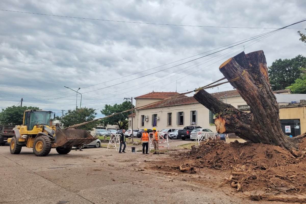Del procedimiento participaron equipos de las direcciones de Espacios Verdes, Obras Públicas, Tránsito, Defensa Civil y la Cooperativa Eléctrica. Por razones operativas, se interrumpió el tránsito en calle Pasteur, entre Urquiza y San Martín.