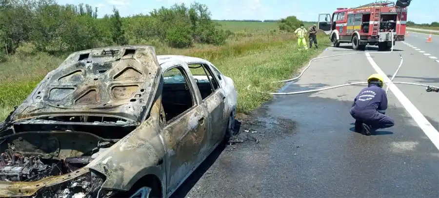 Fue este jueves en horas del mediodía, a la altura del kilómetro 95, tratándose de un Renault Symbol, patente JBX007, el cual tenía como destino la ciudad de Posadas, provincia de Misiones. Por causas que se trataban de determinar, el rodado cobró fuego y las llamas se extendieron con suma rapidez, lo que terminó por causar la destrucción total del vehículo. Al lugar acudió personal de Bomberos Voluntarios de Colonia Elía, que trabajó para sofocar las llamas y evitar su propagación a la zona de pastizales, concurriendo también personal de la empresa de Caminos del Río Uruguay y la Policía de Entre Ríos, destacándose que afortunadamente no hubo personas lesionadas. (Fuente: 03442)