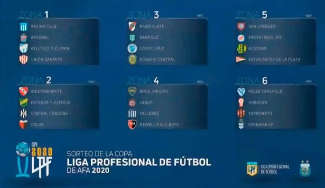 La espera se terminó. El próximo 30 de octubre fue la fecha señalada por la AFA y la Liga Profesional de Fútbol, en consenso con el Gobierno nacional, para el regreso del fútbol de Primera División. Más de siete meses después de la suspensión por el avance de la pandemia de coronavirus, se realizó el sorteo de la competencia que servirá para el reinicio de la actividad. Este nuevo certamen entregará dos plazas para las competencias internacionales del año próximo: dará un lugar para la Copa Libertadores 2021 y otro para la Copa Sudamericana 2022. Hubo cuatro copones en el sorteo: en uno estuvieron los mencionados cabezas de series (Boca, River, Independiente, Racing, San Lorenzo y Vélez) y en otro los equipos de La Plata y Santa Fe (Estudiantes, Gimnasia, Unión, Colón, Rosario Central y Newell’s). Los dos restantes fueron compuestos por los clubes del interior del país (Talleres, Patronato, Godoy Cruz, Central Córdoba, Atlético Tucumán y Aldosivi) y en el último los conjuntos de la zona del AMBA (Argentinos Juniors, Arsenal, Banfield, Defensa y Justicia, Huracán y Lanús). Boca integra una de las zonas más complicadas: la número 4, que bien podría ser considerado el Grupo de la Muerte. Lo compartirá con Lanús, Talleres de Córdoba y Newell’s. A River, por su parte, le tocó Banfield, Godoy Cruz y Rosario Central. En el inicio (el fin de semana del 30 de octubre), Boca visitará a Lanús, River recibirá a Banfield, Racing será local frente a Atlético Tucumán, Independiente jugará en Santiago del Estero ante Central Córdoba y San Lorenzo se medirá en La Paternal contra Argentinos Las Zonas Zona 1: Racing, Arsenal, Atlético Tucumán y Unión de Santa Fe Zona 2: Independiente, Defensa y Justicia, Central Córdoba de Santiago del Estero y Colón Zona 3: River, Banfield, Godoy Cruz y Rosario Central Zona 4: Boca, Lanús, Talleres y Newell’s Zona 5: San Lorenzo, Argentinos Juniors, Aldosivi y Estudiantes de La Plata Zona 6: Vélez, Huracán, Patronato y Gimnasia de La Plata.