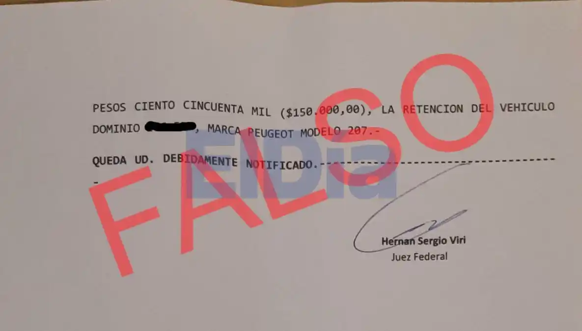 En tiempos donde la (des)información abunda, un rol fundamental de los medios es no solo brindar datos precisos y de fuentes confiables, sino también desarticular las mentiras que circulan a través de las redes sociales y que pueden generar graves perjuicios. En esta oportunidad, se viralizó una citación apócrifa de la Justicia Federal a un comerciante de nuestra ciudad. En la misma, se menciona que se dirigen a él "a objeto de comunicar actuación policial a raíz de una denuncia por parte del Presidente Municipal". No parece ser casual tal alusión al intendente, luego del conflicto en la marcha de los comerciantes al municipio hace siete días. Además, en los papeles truchos se acusa al comerciante de haber violado el Aislamiento Social Preventivo y Obligatorio (ASPO), que se lo cita a declarar y que se le aplicará una multa de $150.000, además de secuestrarle el vehículo. El trabajador aludido en la fake news charló con ElDía y manifestó que "debe ser una broma de pésimo gusto". Le extrañó que "a ningún otro comerciante le llegó nada", y manifestó que "debe ser alguien con ganas de joder nomás". Desde el Juzgado Federal le ratificaron a ElDía que se trata de un documento trucho, con la gravedad de que se falsificó la firma el Juez.