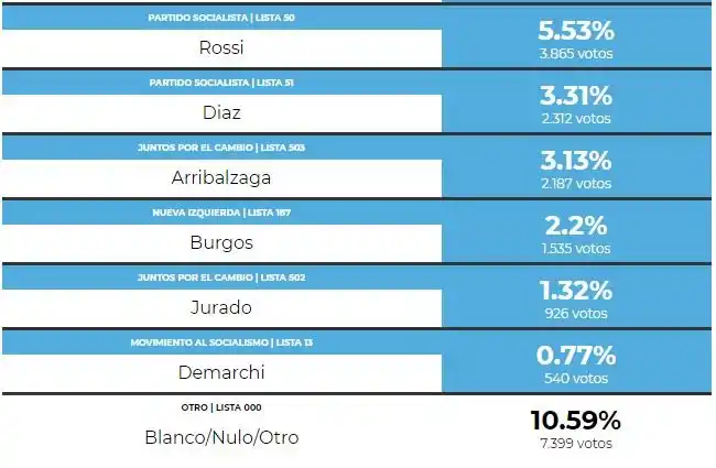 Con más del 86% de los votos escrutados, los candidatos del Frente de Todos ganas las PASO en la ciudad, con una mínima diferencia de votos entre ambos. En segundo lugar se ubicaron los candidatos de Juntos Por el cambio.