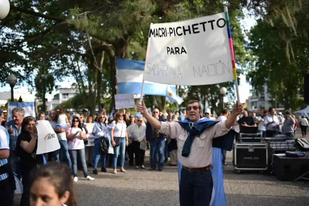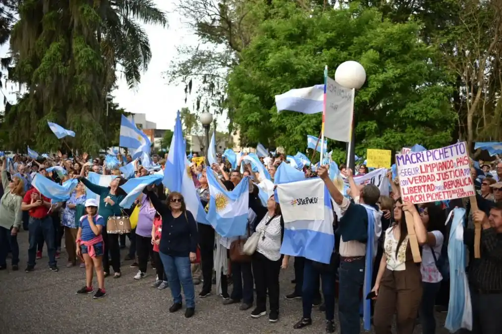La postal fue la habitual para este tipo de actos de Juntos por el Cambio. Muchas banderas argentinas, funcionarios, legisladores y dirigentes políticos de los partidos que conforman la coalición, algunas pancartas y los cánticos, clásicos a esta altura, "si, se puede" y "Mauricio presidente". Lo vivido en la plaza San Martín fue una de las tantas réplicas que tuvieron lugar en diversas localidades del país y el exterior. Una manera de contagiar optimismo y combatir la idea -solventada por los resultados de las PASO- de que la elección del próximo 27 de octubre no está perdida, ni mucho menos. "Ese día vamos a elegir si queremos vivir en una República, con libertad de expresión, con respeto, con tolerancia, con valores, con honestidad, con división de poderes, con un Estado cada vez más moderno, con futuro para nuestros hijos y nietos; o volver a un autoritarismo populista caracterizado por la corrupción, la prepotencia, la mentira, la manipulación de la información, la utilización de la palabra enemigo para referirse al que piensa diferente, que esconde a los pobres para no reconocerlos, que acepta financiarse con el narcotráfico", expresó el locutor y director de Radio Nacional Gualeguaychú, Juan Schroll, luego de que los convocados hayan entonado el Himno Nacional Argentino. "Hemos avanzado mucho en estos cuatro años construyendo las bases de un país moderno, decente, vinculado al mundo. Sabemos que falta mucho y que el comienzo ha sido difícil y duro. Reconocemos los errores cometidos en el camino, pero también estamos convencidos de la Argentina sana que queremos y nos merecemos y que dar un paso hacia atrás significa perder casi todo lo que hemos conseguido con muchísimo esfuerzo", continuó. "El país que apostamos tener y queremos mostrar al mundo es en el que podamos progresar a partir del trabajo y la producción, sin que nadie nos regale nada. Para eso necesitamos seguir integrándonos al mundo y mirar al futuro. Queremos una República con democracia, pluralismo, libertad de prensa y de expresión, donde la defensa de los derechos humanos sea igual para todos, donde nadie tenga privilegios y en la que combatir el delito y el narcotráfico sea una política de Estado y se haga dentro de la ley, sin falsos garantismos", sostuvo el locutor encargado de leer el documento. Y enfatizó en la necesidad que "Argentina que siga vinculándose al mundo, que produzca y que exporte", al tiempo que cuestionó las sociedades políticas y comerciales con países "como Irán, vinculado al terrorismo, o socia de la Venezuela autoritaria de Maduro". "En estos casi cuatro años hemos recuperado el respeto del mundo. Nos hemos integrado y participado de manera seria y responsable. Y hoy vemos que incluso esas cosas están en riesgo. Acabamos de ser testigos de la vergonzosa postura de los diputados del Frente de Todos que han vuelto a impedir la adhesión del Parlasur al informe sobre violaciones de los derechos humanos en Venezuela, realizado por la Alta Comisionada para los Derechos Humanos de la ONU, Michelle Bachelet. Claramente, eso está en sintonía con el alineamiento ideológico que tendrá la Argentina si gana la fórmula opositora pues su candidato anunció que retirará a nuestro país del denominado Grupo de Lima", cuestionó el documento oficial. "Este 27 de octubre se pone en juego el destino del país, y como ciudadanos debemos salir en defensa de la Constitución y de la República. El 27 votemos por el futuro para sepultar definitivamente al pasado. Tenemos que estar más unidos que nunca", expresó Schroll. Y, como consigna militante, sintetizó: "Algo debe quedarnos claro: de cara al 27 octubre, el peor escenario es no dar la batalla".