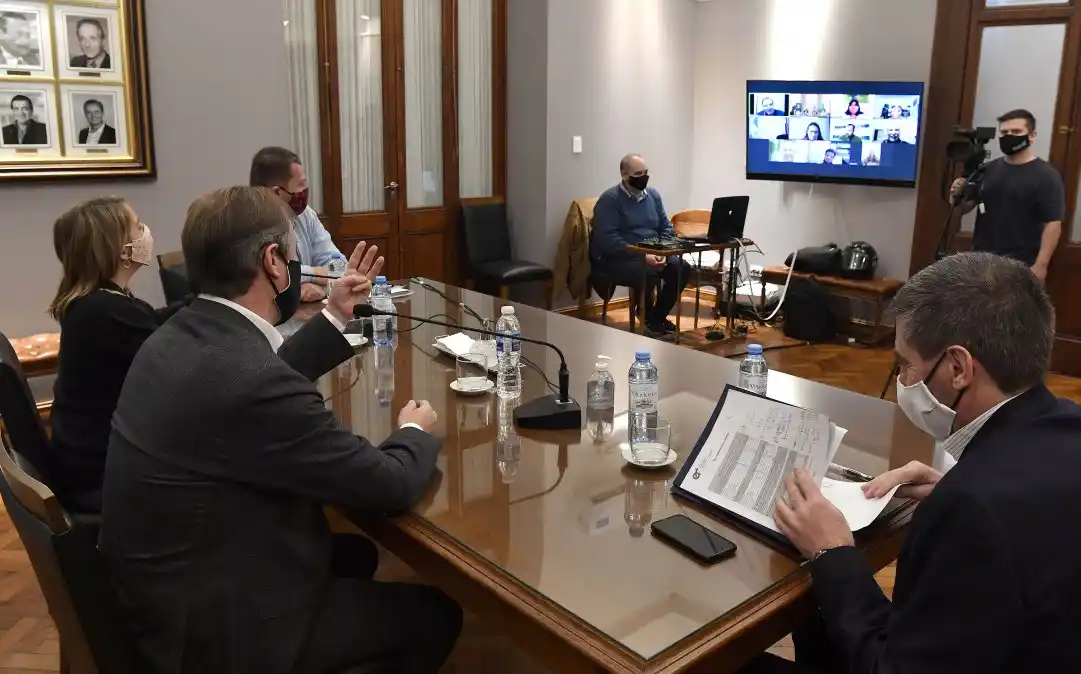 A través de una videoconferencia con senadores oficialistas, el gobernador Gustavo Bordet abordó detalles del proyecto de ley de emergencia solidaria que tiene media sanción en Diputados y se tratará este jueves en la Cámara Alta provincial. El gobernador estuvo en el Senado, junto a la vicegobernadora Laura Stratta; el ministro de Economía, Hugo Ballay y el presidente del bloque del frente Creer, Armando Gay. Al finalizar el encuentro virtual, Stratta explicó que "fue una charla donde pusimos en común todos los aspectos que tienen que ver con esta ley de emergencia solidaria, a quiénes alcanza y la necesidad en este momento”, comentó. Agregó: “Estamos en una coyuntura compleja, inédita, en crisis y necesitábamos avanzar en los dispositivos necesarios que nos permitan al Estado cumplir con nuestras obligaciones". En esa línea, la vicegobernadora resaltó que “esta ley impacta en sectores que vienen ganando y que no han perdido en el marco de esta pandemia. Ya lo venimos diciendo, el sector financiero, la venta mayorista de medicamentos, aquellas extensiones de más de 1.000 hectáreas pero también plantea un financiamiento especial y solidario a la Caja de Jubilaciones que en la provincia de Entre Ríos tiene un gran déficit y que en estos momentos se vuelve más difícil”. También “incorporamos un artículo que plantea que las paritarias se centralicen y que no haya poderes del Estado que tengan paritarias individuales que después impacten en las arcas provinciales”. Informó Stratta además, que se incorpora “un artículo en la Cámara de Diputados que sostiene que si las proyecciones del presupuesto garantizan a la provincia un ingreso, aquellos sueldos o personas alcanzadas por la ley que cobran de 75.000 a 100.000 pesos tengan una contemplación especial”. Finalmente, destacó que "esto no es un ajuste, sino un aporte solidario en un momento de crisis y en una coyuntura que requiere de mucha responsabilidad de quienes tenemos un rol institucional y debemos resguardar el bien común". "La pandemia nos obliga a tomar decisiones" Por su parte, el senador Armando Gay, comentó que "son momentos donde esta pandemia nos pone a prueba y realmente nos obliga a tomar decisiones". El legislador afirmó que "uno no puede hacerse el desentendido en situaciones como esta, y si hemos llegado acá es porque se han abordado todas las medidas necesarias". Gay resaltó que "lo recaudado se coparticipa a los municipios, que también han perdido recursos, han visto sus recursos disminuidos de la provincia y también los recursos coparticipables federales han disminuido”. “Por eso creo que son momentos donde los dirigentes tienen que tomar decisiones concretas, claras, transitorias y que apelen a la equidad y más que nada a la solidaridad. Por eso hoy tenemos esta responsabilidad de tomar las decisiones y seguir teniendo un Estado protagonista y presente en todos los niveles para hacer frente a esta pandemia", concluyó.