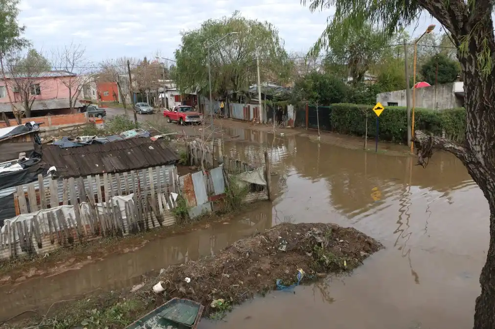 Los pequeños de un barrio que se caracteriza por contar con un número importante de viviendas precarias-chapa, y cartón- y otras- muy humildes de material- se acercaban hasta la casa de Teresa para llevarse un paquete de galletitas y una leche. Escena que se repite todos los días, pero en los que corren con el agravante de tener que cruzar por el agua en la intersección de Misiones y Clavarino y Misiones al norte donde todavía queda agua. Teresa recordó que los días miércoles o jueves fueron los más difíciles, luego de un fin de semana donde “pudimos desarrollar nuestra tareas normalmente. Dijo que no imaginaba que el río iba a crecer tan rauda y rápidamente. “Prácticamente no nos dio tiempo a nada. Ver el salón con 60 centímetros de agua me produjo una sensación horrible”, aseguró. “Ahora que el agua bajó nos abocamos a tareas de limpieza. El salón quedó muy sucio y con barro por todas partes. Párrafo aparte para “la enorme cantidad de ratas que pululan en el merendero. Es increíble, algo nunca visto. No sabemos qué hacer con la presencia de tantos roedores y lo peligroso que esto significa para la salud”, alertó Teresa. Asimismo, resaltó que “no hay que olvidarse que los fines de semana comen aquí 140 niños de todas edades”. Este fin de semana no cocinará porque la prioridad es limpiar. Para eso necesitamos, una vez más, de la solidaridad de la gente. Pidió que aquellos que puedan se acerquen al merendero, Clavarino y Misiones, con lavandina y elementos varios para limpieza. Andrés, uno de los vecinos damnificados, dijo que los que habitan esta zona no pueden vivir así. Opinó que algo está pasando, porque “hasta no hace demasiado tiempo con el río a 4 metros no teníamos inconvenientes, pero ahora el agua ingresó a nuestras viviendas y dañó las pocas pertenencias que tenemos”. Al igual que Teresa dijo que la “inundación provocó que el lugar se llenará de ratas”. Juan, un joven de 32 años, también charló con ElDía. Lo hizo en el techo de su casa; lugar donde vivió y pernoctó junto a sus tres pequeños hijos. Amargado por el momento, dijo que la casa que está levantando, fue “castigada por la inundación”. Y continúa “todo fue muy rápido, no tuve demasiado tiempo como para salvar lo poco que tengo”. Así que “miércoles y jueves trepamos al techo, colocamos unas lonas, tiramos dos colchones y nos quedamos en lo alto de la casa, soportando dos noches muy frías”. Mencionó que no dejó la “casa sola por temor a que roben mis pertenencias”. Juan trabaja como ayudante del albañil, laburo que no puede “realizar por quedarse junto a sus seres queridos en un “bendito improvisado en el techo de su casa de material que reemplaza al rancho en el que vivió varios años”. La situación de Juan se repetía en varias casas y casillas ubicadas a pocos metros. Vecinos que decidieron “cobijarse de las bajas temperaturas con bolsas y nylon en los techos por miedo a ser robados”. Pedro, vecino del Barrio Munilla, en un terreno ubicado a la vera de la avenida Parque, a tres cuadras de Pellegrini en dirección al río, levantó un pequeño campamento junto a una vecina. Dijo que “no dejó la zona y que montó guardia los días en que la creciente anegó su casa por temor a que le roben”. Señaló que “gracias a un vecino que nos donó leña cocinamos, nos calentamos e hicimos guardia miércoles y jueves”. La Tablita El agua ya no corre por el arroyo Gaitán frente al primer asentamiento de la ciudad. Baja lentamente. No escurre como debería provocando, esta situación, que las bolsas de basura se queden en el lugar. Se hundió la barcaza del puerto Ayer, a las cinco de la mañana, la vieja barcaza que fuera reflotada, hace algunos años, comenzó a hundirse. Finalmente, cerca de las 10, de la mañana terminó sumergida en el fondo del río. Cabe destacar que la correntada destrozó la marina de Melchiori, frente al puerto local y arrastró varios botes y canoas.