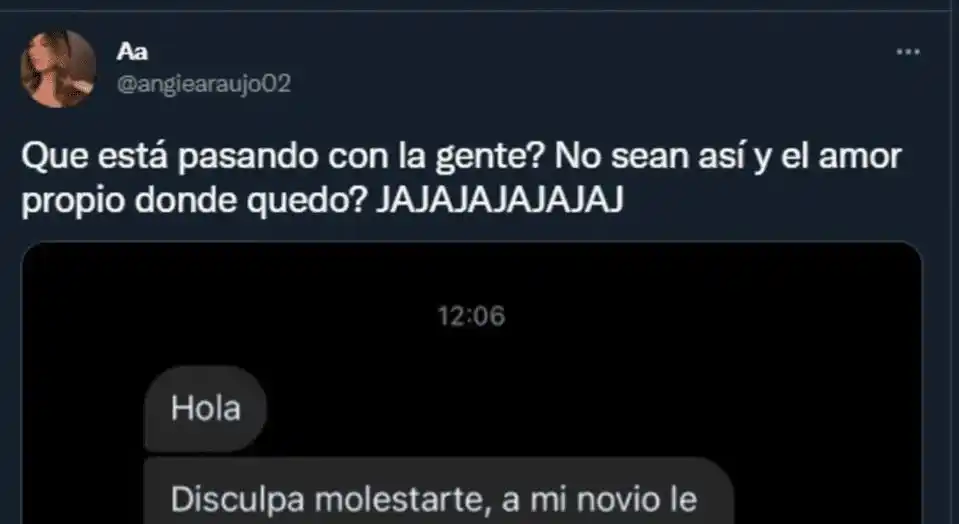 En Twitter abundan historias insólitas, desopilantes y difíciles de creer. Se volvió costumbre que en el timeline (inicio) de la red social del pajarito aparezcan capturas de pantalla de conversaciones en WhatsApp, Instagram o de posteos en grupos de Facebook. También encontramos relatos de amor, pedidos de trabajo, recomendaciones, memes, entre otros. En esta ocasión se viralizó el insólito pedido que una "tóxica" le hizo a una chica para que su novio no le diera me gusta a sus fotos. Todo comenzó con un mensaje en Instagram, la usuaria de Twitter @angiearaujo02 compartió la captura de pantalla del insólito pedido. "¿Qué está pasando con la gente?", comenzó diciendo la joven y pidió que "no sean así. ¿Y el amor propio dónde quedó?", fueron las palabras que escribió junto al screenshot. "Hola. Disculpá molestarte, a mi novio le encanta tu pelo y quería ver si podías cortártelo o no montar videos donde se vea. Te lo pido de mujer a mujer. Gracias", decía el mensaje que la tuitera recibió en Instagram y no podía creeerlo. El insólito pedido se viralizó rápidamente. Acumuló más de 18 mil me gustas y superó los 2 mil retuits. Como es habitual en esta situación, otros usuarios no evitaron reaccionar con chistes y memes al respecto. "Hola. Disculpá molestarte, es que me encanta tu pelo, ¿podrías cortártelo, quedar como cotorra recién nacida y me lo mandas para unas extensiones? Te lo pido, gracias. Hubiera sido un mejor mensaje", ironizó otra usuaria de la red social. También hubo quienes creyeron apenas leyeron las primeras líneas que el mensaje podía ser un pedido de consejos para tener el pelo como la protagonista del tuit viral: "Yo pensando que le iba a preguntar cómo tenerlo así y que recomendaciones le daba". Sin embargo, una usuaria le recomendó que respondiera la conversación y le pregunte quién es el novio para bloquearlo.