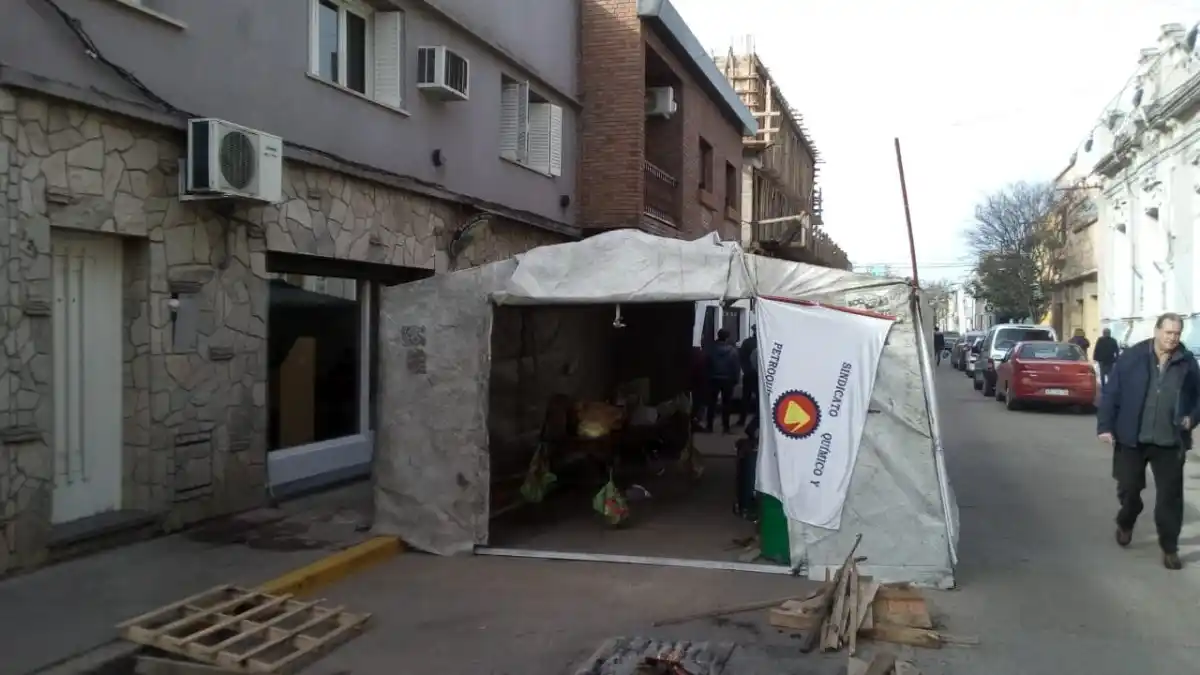Trabajadores agrupados en el Sindicato de Químicos y Petroquímicos decidieron levantar una carpa en plena calle España, frente a la Secretaría de Trabajo, donde por la mañana se realizó un encuentro entre representantes de la empresa y el gremio, y no se llegó a un acuerdo. Desde el Sindicato se esperaba el dictado de la Conciliación Obligatoria para que los 16 despedidos regresaran a sus puestos de trabajo, pero la reunión no tuvo el desenlace esperado y por ello se decidió montar una carpa de 10 metros de largo por 5 metros de ancho que ocupa prácticamente toda la calzada. Según indicaron a ElDía, la intención que mantienen los trabajadores es la de pernoctar en ese lugar para mañana por la mañana dividirse los manifestantes. Algunos quedarán en ese lugar, mientras que el resto se dirigirá a la planta en el Parque Industrial para realizar el reclamo en ese lugar. Hoy, miércoles, la carpa continúa firme, con 30 trabajadores de la firma del Parque Industrial allí. Al momento, "no han llegado novedades desde Trabajo de Paraná", informaron quienes encabezan la protesta. La planta, paralizada Oscar Casco es secretario general del Sindicato de Químicos y Petroquímicos de Zárate. En diálogo con ElDía, confirmó que la planta de Unilever "está totalmente paralizada". "Estamos esperando la resolución de lo que se pidió ayer en la audiencia, donde el sindicato solicitó que se dejaran todos los despidos sin efecto, o que el Ministerio (de Trabajo) arbitrara todas las medidas legales para restituir la paz social en la zona", expresó. "Nosotros estamos dispuestos a acatar lo que el Ministerio dictamine, pero hasta el momento no se ha dictaminado nada", indicó Casco, quien cuestionó los tiempos del ejecutivo, que "está bastante lerdo". "Antes, en la época de las carretas podía tardar un par de días la resolución, pero ahora con la tecnología en cosas de minutos se puede resolver el problema. Hoy tenemos una planta totalmente parada y la decisión fuerte que tomaron los trabajadores de no volver a entrar hasta que no sean todos reincorporados", agregó el sindicalista, que además pidió explicaciones. "Queremos saber por qué echaron a estos 16 compañeros. Si fue por una cuestión económica, si son problemas de política de gobierno, problemas energéticos, o si hay que reubicar gente, necesitamos una respuesta inmediata", sintetizó.