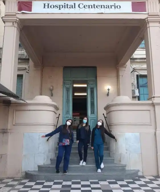 Así como se llevan adelante en nuestro efector las prácticas finales de los estudiantes de Medicina y de Kinesiología, lo propio hicieron tres jóvenes de la Licenciatura Binacional en Obstetricia de la Facultad de Ciencias de Salud de la Universidad Nacional de Entre Ríos. Tras 7 meses de trabajo en medio de la pandemia de Covid-19, Melina, Karen y Agustina culminaron esta semana sus 1500 horas de prácticas finales obligatorias en el Hospital Centenario. Al respecto, el Jefe del Servicio de Obstetricia Pablo Arbelo detalló que las estudiantes “hacen pase de sala junto a residentes y médicos del servicio”, así como también “consultorio externo tanto en embarazos de bajo riesgo junto con las obstétricas como de alto riesgo junto a los médicos a cargo” Además, añadió que “también están en la guardia de obstetricia y participan tanto en cesáreas programadas como de urgencia”. “Es re lindo, está bueno acompañar a la mujer en un momento tan especial de su vida”, expresó Melina, mientras que Karen destacó que “las guiamos para que puedan tolerar y disfrutar a su vez el momento, porque para eso estamos, para acompañarlas y guiarlas y que sea un proceso lindo, a pesar de que es doloroso”. El paso a paso del parto Las jóvenes de 24 y 26 años comentaron que en la sala de preparto “primero vamos controlando desde que se interna la paciente con 4 o 5 centímetros de dilatación. Luego observamos los latidos, las contracciones y a su vez hacemos tacto para ver si avanza la dilatación o no. Acompañamos a la mujer y le ofrecemos distintos métodos (la pelota, que camine) y varias medidas para que vaya sobrepasando el momento, que para algunas es fácil y para otras es súper difícil”. A continuación, cuando la mujer tiene la dilatación completa, “pasamos a sala de parto, tenemos la ayuda de las chicas de enfermería y si es un parto que viene normal la asistimos con la obstétrica, y si se complica llamamos a ginecología”, relataron. Finalmente, una vez que nació el bebé “fomentamos el apego con la mamá y esperamos a que deje de latir el cordón. Y si se necesitó hacer algún corte en el momento del parto lo suturamos también”, describieron, y acotaron que por cualquier complicación “al lado está la sala de Enfermería de recepción al recién nacido”. Acerca del parto respetado, destacaron que “se trata de que sea lo menos intervencionista posible, que cada procedimiento e intervención sea explicada a la mujer, que a su vez pueda estar acompañada de la persona que ella elija tanto para el trabajo de preparto, el parto y el posparto, el puerperio y la crianza del bebé”. “Dejamos pasar al familiar que ella quiera, por la pandemia es una sola persona con barbijo y todos los protocolos, y los hacemos partícipes de ese momento”, agregaron. A seis estaciones de ser Licenciadas en Obstetricia Ambas, al igual que Agustina, terminaron de cursar la carrera el año pasado y tenían que hacer las prácticas finales, pero la pandemia las postergó hasta el mes de septiembre, cuando por fin pudieron comenzar. Y, esta semana, finalmente culminaron con las misas tras 7 meses (1500 horas) entre el Hospital Centenario y un Centro de Salud que le fue asignado a cada una. “Cada dos días hacíamos guardias de 24 horas en el Centenario, y cuando no teníamos guardia íbamos a los centros de salud”, comentaron. Las chicas valoraron el trato por parte de todo el personal del efector, tanto de las enfermeras como de los médicos y, fundamentalmente, de las parteras “que estuvieron con nosotras en todo momento, desde que entramos que nos mirábamos entre nosotras y teníamos miedo hasta la última práctica”. “Estuvo súper bien, la verdad que nos van a quedar hermosos recuerdos del hospital, soy muy buenos compañeros”, agradecieron, y contaron que van a seguir asistiendo “porque nos ayuda a no perder la práctica, elegimos un día a la semana y venimos, no es obligatorio pero nos brinda una carrera hospitalaria hasta que nos recibamos”, destacaron. Ahora, el último eslabón para convertirse en profesionales es el ECOE (examen clínico objetivo y estructurado) que rendirán en los próximos días. “Consta de la simulación de la atención a una paciente embarazada, son 6 estaciones y cada una tiene un caso clínico que tenemos que resolver”, explicaron. “Ojalá nos recibamos ahora… después vemos que rumbo tomamos”, desearon, y adelantaron sobre su futuro que “nos gustaría seguir la residencia”. ¡Éxitos!