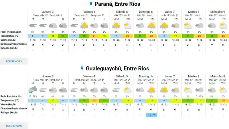 Las lluvias que perduraron durante dos días en Entre Ríos y que fueron una bendición tanto para el sector agropecuario como para las zonas que padecían graves incendios forestales se despiden algunos días. A partir de hoy las condiciones del tiempo empezarán a mejorar, aunque durante esta jornada se mantendrán el aire frío y las bajas temperaturas. Mañana, con la presencia más notoria del sol, las marcas térmicas volverán a superar los 20 grados. En Entre Ríos se aguardan para hoy máximas de 16 grados. Dichos registros tendrán un paulatino aumento con la disminución de la nubosidad y ya para mañana se esperan 21 grados. El fin de semana estaría agradable y sin precipitaciones.