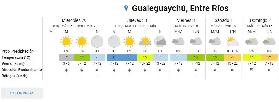 Este miércoles amaneció con la mínima más baja del 2020, aunque para el fin de semana e inicio de la próxima se anuncia que la temperatura irá en ascenso y que superará largamente la barrera de los 20 grados. En la zona rural la helada se hizo sentir con fuerza. Los campos quedaron cubiertos por un manto blanco; en tanto que los bebederos de agua para la hacienda quedaron congelados, al igual que algunas bombas. Un chacarero, consultado por ElDía, señaló que “luego de días primaverales y precipitaciones que ayudaron para que venga un poco de pasto, llegaron heladas que son previsibles a esta altura del año y dejaron el suelo duro y frío”. Daniel Hernández, ex Jefe de Defensa Civil y especialista el fenómenos climáticos, contó a ElDía que “la temperatura más baja, en lo que va del 2020, se dio esta mañana, en la ciudad, entre las 07.50 y las 8 con una mínima de -3º C en el casco urbano”. Hernández resaltó que los datos oficiales que suministra el Servicio Meteorológico Nacional son tomados en una estación en el medio del campo, en tanto que él mide en la ciudad, en el casco urbano en donde se conforma una isla térmica por la calefacción que tienen las viviendas, razón por la cual normalmente existen diferencias entre lo que es el campo propiamente dicho, los barrios ubicados en las afueras de la ciudad y en la urbe, particularmente donde se concentran la mayor cantidad de casas y edificios. El especialista pronosticó que "en tres/cuatro días vamos a tener máximas que orillen entre los 26 y 28 grados por un clima sub tropical"; y anunció que en pocos días "la influencia de vientos del sector norte va a meter una masa de aire cálido, y cuando vuelvan a entrar vientos fríos del sur, propios de la época, vamos a tener bajas temperaturas nuevamente”. En tanto, el SMN pronostica para el jueves que continuará un clima gélido, con mínima de 0ºC y máxima de 15ºC. Para el viernes, la temperatura empezará a elevarse hasta alcanzar los 6ºC de mínima, mientras que el fin de semana trepará ese indicador a los 13ºC y 16ºC, y con una máxima que trepará hasta los 22ºC.