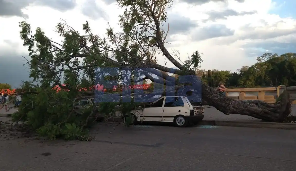 En el atardecer del lunes, el fuerte viento que se levantó en la ciudad provocó que un viejo árbol ubicado en la vereda que da al río Gualeguaychú en Avenida Morrogh Bernard se cayare y terminara aplastando a dos autos que se encontraban estacionados en el lugar. El vehículo más afectado fue un Fiat Uno, que quedó literalmente aplastado por el tronco del árbol, mientras que un VWE Gol Weekend que estaba estacionado metros por delante, también sufrió las consecuencias, en este caso afectado por las ramas del árbol. La peor parte se la llevó Ñandubaysal Mientras que en la costanera de Gualeguaychú el viento ocasionaba destrozos y caída de árboles, en el balneario ubicado sobre el río Uruguay el panorama fue mucho más complicado. A diferencia de lo que pasó en la ciudad, en el complejo turístico también se desataron fuertes aún mayores, pero además también cayó una tormenta de granizos y fuertes lluvias. El episodio meteorológico provocó grandes destrozos en la infraestructura del lugar, volando varias de las sombrillas fijas o el mobiliario, como mesas, reposeras y sillas. Los motivos Lo que sucedió el lunes por la tarde en la costanera de Gualeguaychú y en Ñandubaysal fue un fenómeno climático que surgió de manera imprevista. Según los especialistas, las condiciones ofrecieron un caldo de cultivo ideal para que se formaran fuertes vientos, los cuales provocaron estos destrozos. "Fue lo que comúnmente se llama coloquialmente como 'cola de tornado'. Estos fenómenos son típicos del hemisferio norte, y desde hace unos 15 años se comenzaron a replicar, por ahora en menor medida, en este lado del mundo", explicó a ElDía Daniel Hernández, ex titular de Defensa Civil y especialista climatológico. "Fueron fuertes vientos inesperados que golpearon la zona de la Costanera, y afectaron a los árboles de esa zona debido a que la zona ribereña de Gualeguaychú está construida sobre terrenos originales. Luego pusieron unos paredones de hormigón de 5 metros de altura, y luego se rellenó con arena del río. Por lo tanto, no hay tierra en esa zona, y por lo tanto las raíces no tienen a donde ir", amplió el especialista.