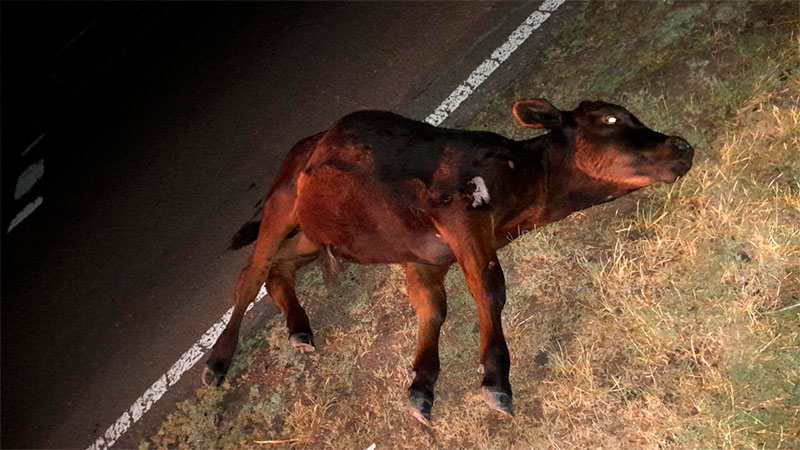 Un automóvil que se desplazaba desde Las Moscas, en sentido sur, con destino a Rocamora, chocó un ternero que se cruzó en su camino. El fuerte impacto provocó la muerte instantánea del animal y daños materiales importantes en el vehículo cuyos ocupantes resultaron ilesos gracias a que venían con los cinturones de seguridad puestos.