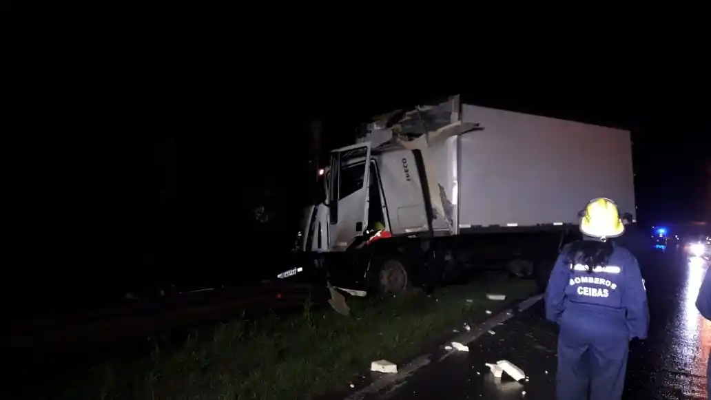 Tras chocar con su camión una columna de media tensión a la altura del kilómetro 160 de la Ruta 12, el personal de emergencia debió rescatar al chofer del rodado, quien debido al impacto no pudo salir del habitáculo. El accidente se produjo cerca alrededor de las 5.30 de la madrugada, y el vehículo accidentado es un camión Iveco, modelo 170 e22, conducido por Diego Maccioni de 44 años y domiciliado en Gerli, Buenos Aires, despistó e impactó el guardarrail. El chofer debió ser ayudado por personal de Salud minutos antes que arribaran los bomberos de Ceibas. El choque también afectó a las columnas de cemento del tendido eléctrico, lo que provocó la intervención de Enersa