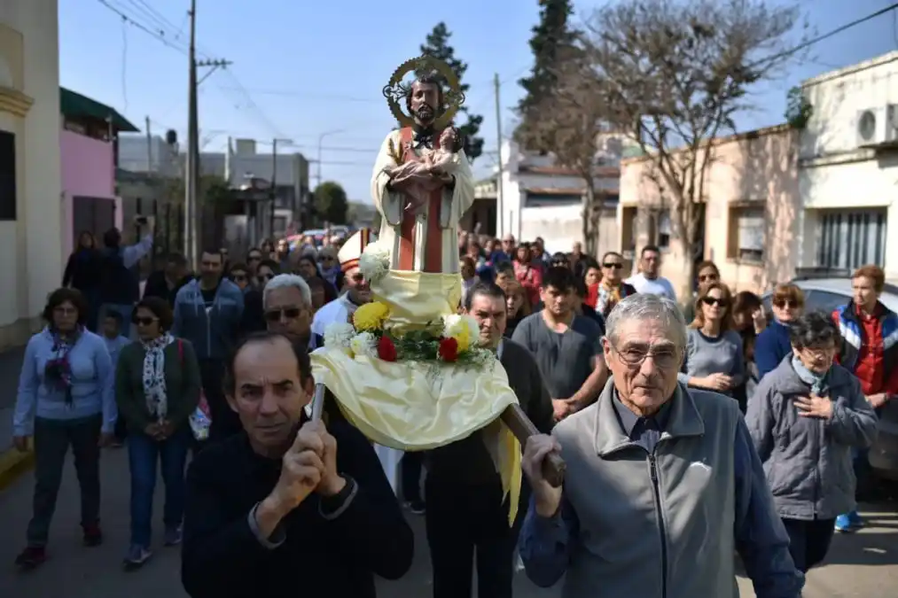 San Cayetano, patrono del pan y del trabajo, volvió a reunir en su día a las personas que agradecen ser parte del mundo laboral, pero por sobre todo a los que suplican por una oportunidad para conseguir un empleo. A diferencia de años anteriores, se notó un aumento en la cantidad de creyentes, que a las partir de las 13 se congregaron en la parroquia Cristo Rey, en el barrio Pueblo Nuevo, desde donde partió la procesión de casi un kilómetro hasta la capilla San Cayetano, sobre la calle Sargento Cabral, en el barrio Yapeyú, epicentro de las liturgias que tienen lugar todos los 7 de agosto. “Hace varios años que aumenta la cantidad de gente que llega para pedir trabajo, y este año volvió a pasar lo mismo. Lamentablemente, casi todos vienen para pedir, y los que se acercan para agradecer lo hacen de corazón porque saben que son afortunados”, sostuvo Nuria Valiente, empleada en una casa de artículos de limpieza, que hace más de 15 años que participa de la jornada de religiosidad popular que acontece todos los 7 de agosto. La peregrinación, encabezada por la figura de San Cayetano, terminó ocupando casi dos cuadras de largo cuando se llegó al destino final. Algunos vecinos se fueron uniendo a medida que la columna fue avanzando y los creyentes pasaban por sus casas. En cambio, otros prefirieron esperar la llegada de la caravana directamente en la capilla, donde recibieron al santo al grito de “¡Viva San Cayetano!”. Para celebrar el día del santo patrono, se realizaron tres misas: una al finalizar la procesión, otra por la tarde y la tercera a las ocho de la noche. La primera estuvo oficiada por el obispo de Gualeguaychú Monseñor Zordán, quien fue un partícipe activo durante la procesión. Durante todo el día varios más se acercaron a la capilla de San Cayetano, ubicada en uno de los sectores más humildes de la ciudad. Muchos sostenían espigas, estampitas y sus imágenes del Santo Patrono del Pan y el Trabajo. El contexto económico del país fue el que marcó el aumento de fieles participando de la liturgia: a comienzo de julio, la delegación Gualeguaychú de la Dirección de Trabajo, 523 personas se quedaron sin trabajo en la ciudad, entre despidos y retiros voluntarios, durante el primer semestre del año. “Hace dos años que estoy sin trabajo. Sobrevivo gracias a alguna changa que aparece y me las rebusco, pero está todo muy difícil: hay poco trabajo, los servicios no paran de subir. Hasta cargar la SUBE es un problema. Ojalá todo mejore pronto. Y eso que yo no tengo hijos ni estoy casado, sino no sé cómo haría”, manifestó Martín, vecino de la capilla de San Cayetano, quien inmediatamente concluyó: "Uno de los religiosos me dijo que San Cayetano nos pide que tengamos confianza y que creamos en él, en la Virgen y sobre todo en Jesús, que soportó por nosotros el calvario en la cruz. Soy muy creyente, y confío que algún día todo mejorará”. San Cayetano, el hombre Fue un presbítero italiano que nació en Vicenza, en 1480 (el día exacto se desconoce). Su verdadero nombre es Gaetano di Thiene, y es el menor de los tres hijos. En 1506 conoció al Papa Julio II, quien lo nombró protonotario apostólico y secretario privado, hecho que lo obligó a vivir el Vaticano. Su primer milagro fue en Venecia mientras visitaba un hospital. Según cuentan, llegó a la cama de una joven a la que estaban por amputarle una pierna debido a la gangrena que padecía. Cayetano, le sacó la venda, le beso la pierna y le hizo la señal de la cruz. Cuando los médicos se preparaban para operarla, notaron que la muchacha estaba curada. Murió en Nápoles a los 77 años, el 7 de agosto de 1547. Fue beatificado el 8 de octubre de 1629 por el papa Urbano VIII y canonizado el 12 de abril de 1671 por el papa Clemente X.