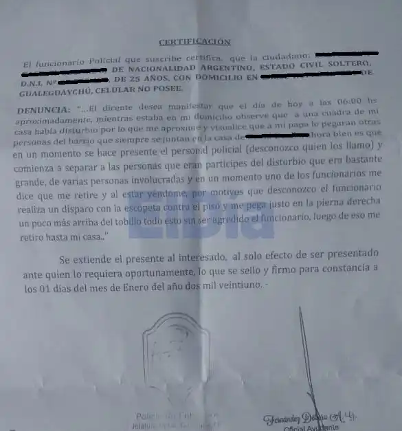 Un conflicto entre vecinos terminó con un herido de bala de goma y un policía denunciado