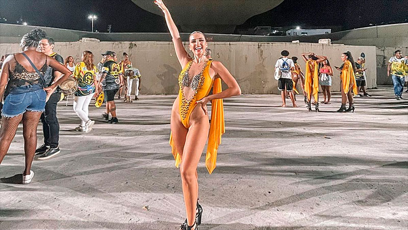 La joven bailarina, luego de su participación el año pasado (2023) en el carnaval carioca, tras ganar un concurso de Mussa que brindaba la posibilidad de desfilar en el sambódromo Marques de Sapucai, este año, nuevamente forma, parte de los desfiles.