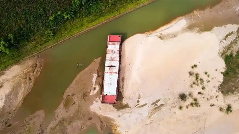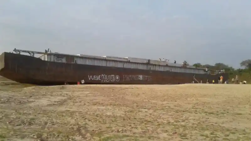 La bajante histórica del Paraná dejó totalmente al descubierto una barcaza que estaba encallada en una localidad de Corrientes y dejó imágenes impactantes. Según detalló Adrián Gómez Bandolin, director de Prensa y Comunicación del Municipio de Lavalle, lo que ahora se convirtió en un atractivo turístico, es una embarcación que se parece “a un contenedor”, detalló. Estaba encallada en la zona de Puerto Viejo, en cercanías a Lavalle, desde antes de la bajante. "Se encontraba como estacionada y con la bajante no se la pudieron llevar más porque está en la tierra", aseguró el profesional.Por otra partes, se identificó también cierto acto vandálico asociado con propagandas políticas y según explicó Gómez Bandolin al diario El Litoral "fue muy repudiado".