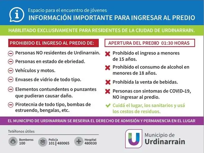 Solo podrán ingresar quienes tengan domicilio en Urdinarrain y habrá controles para que esto se cumpla. Además el ingreso será caminando y habrá requisas de los elementos que ingresan al predio.