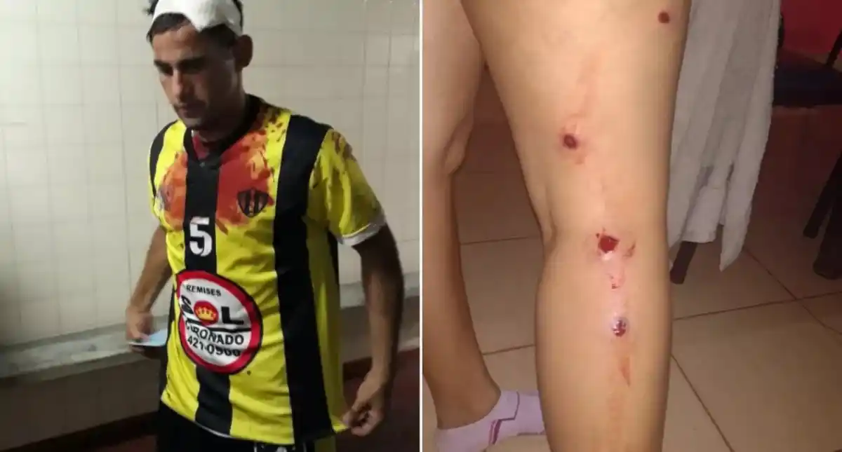 9 de Julio de Colonia Ayuí y Wanderers de Concordia jugaron este miércoles en la cancha de Libertad un partido importante por la permanencia en el torneo de la Liga COncordiense que finalizó igualado 3 a 3. Hasta aquí lo que sería una crónica deportiva, pero todo se desmadró al final del encuentro, donde llegaron los problemas. Franco Rolón, arquero de Wanderers hizo señas a los jugadores de Ayuí, que respondieron con empujones. En ese momento, algunos simpatizantes del Bohemio saltaron el alambrado y se sumaron al grupo que se estaba peleando. La Policía intervino, y sacó a los jugadores de 9 de julio del campo de juego. Entre empujones, también separaron a algunos simpatizantes. Mientras los efectivos policiales hacían eso, algunos hinchas del conjunto de la Colonia fueron en busca de los aurinegros y se desató el caos. Jugadores intentaron separar las peleas, mientras la Policía intervenía con golpes de bastón, y luego con disparos de bala de goma. Como resultado del enfrentamiento y la intervención policial, dos jugadores, Federico Batista y Jonathan Fernández, fueron trasladados al hospital. Batista fue atendido y pudo recuperarse, Fernández perdió el conocimiento y trataban de reanimarlo. Además, el presidente de 9 de Julio, Carlos Benítez, también terminó con un golpe en la cabeza e inconsciente y fue trasladado al hospital. En tanto, Oscar Cumbá, jugador del Bohemio, terminó con un impacto de bala de goma y Julio Leonardi, DT de 9 de julio, con dos impactos en sus piernas; entre otros que también habrían recibido ese tipo de balazos. El bochornoso hecho no fue el único que empañó el fútbol de Concordia, dado que el sábado, durante el partido final de la B, jugadores de Ferrocarril y Juventud Unida de Benito Legerén también habían protagonizado una pelea. En esa oportunidad también ingresaron hinchas a golpear jugadores, saltando el mismo alambrado que lo hicieron en la tarde del miércoles. (El Entre Ríos)
