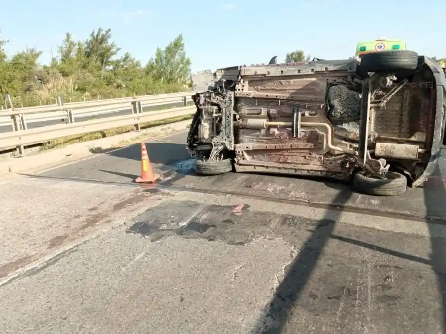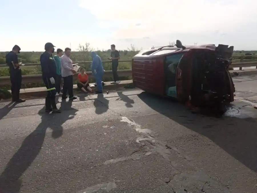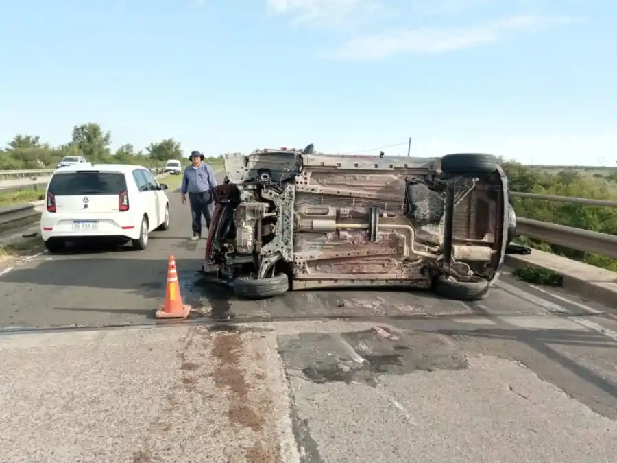 Volcó un auto en un puente de Ruta 12: por milagro no cayó al vacío