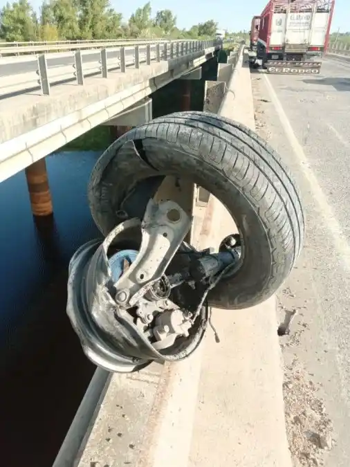 Sucedió durante la tarde del lunes a la altura del kilómetro 149. Una de las ruedas del vehículo quedó incrustada en la baranda, y por un giro del destino el coche quedó sobre la cinta asfáltica en lugar de caer al arroyo, lo cual podría haber sido peor para los cuatro ocupantes.