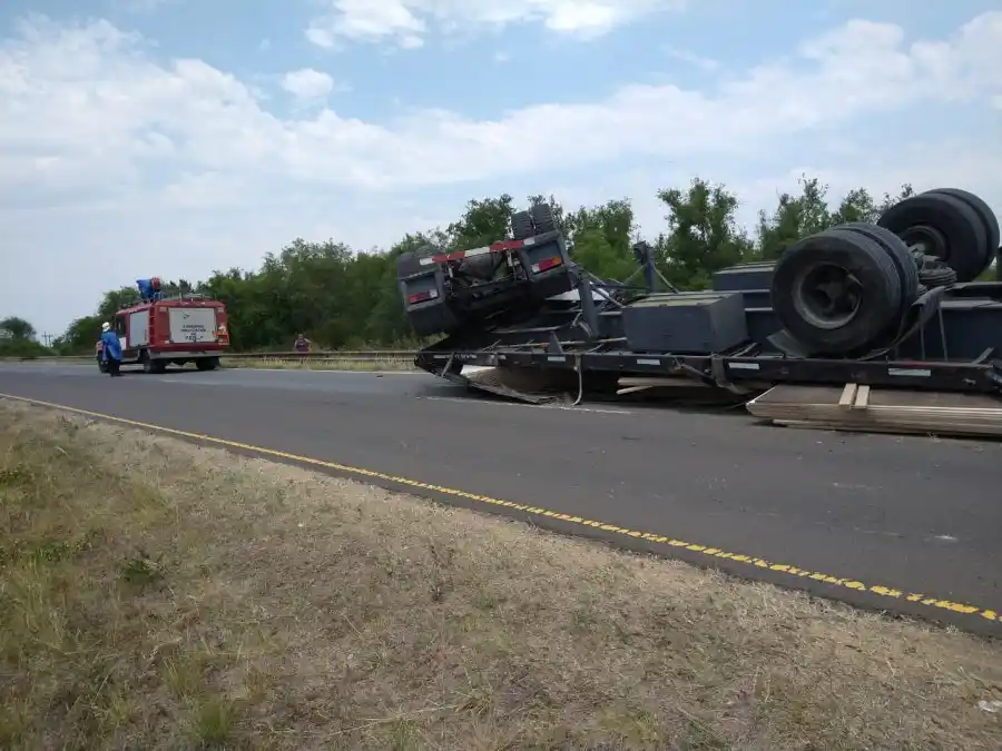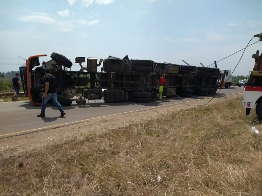 Volcó un camión en Ruta 12: el chófer terminó con politraumatismo