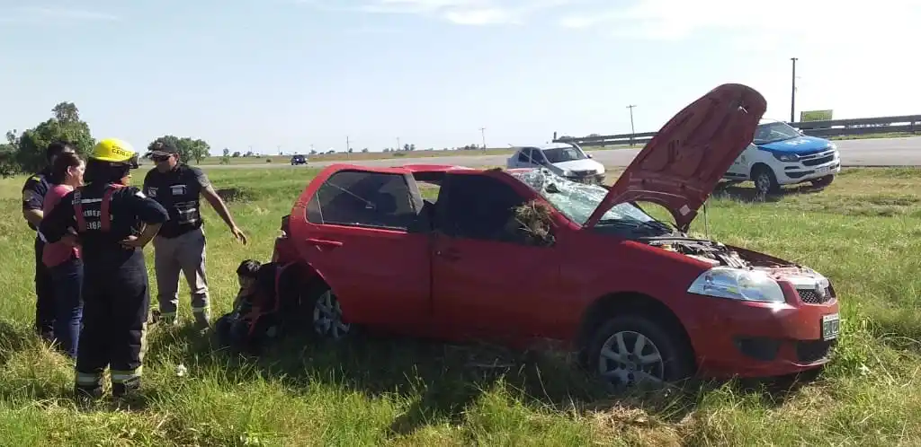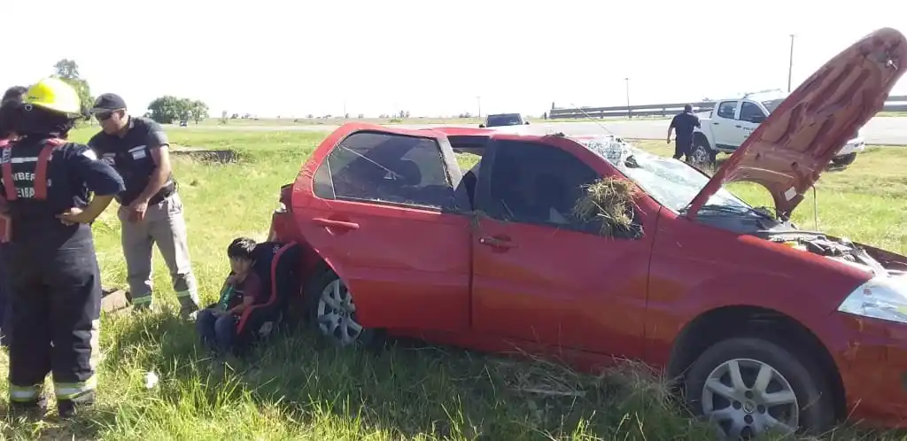 El domingo por la tarde, a la altura del kilómetro 30 de la Autovía 14 (Ruta 14), un vehículo en el cual iba una familia de Gualeguaychú despistó y volcó mientras circulaba en dirección a Buenos Aires. El auto, un Fiat Siena, era conducido por Daniel Salazar, de 29 años, y lo acompañaban su pareja Florencia Solange Sitner, de 26 años, y el hijo de ambos, Mateo Benjamín, de tres años, todos domiciliados en Gualeguaychú. Al llegar los Bomberos Voluntarios de Ceibas al lugar del accidente, encontraron el vehículo volcado y a la familia recibiendo las primeras atenciones médicas. Todos resultaron con heridas leves, pero fueron la madre y el niño los que debieron ser trasladados en ambulancia hasta el Hospital Centenario de Gualeguaychú. Además de los bomberos, trabajaron en la zona la caminera de Gualeguacyhú, personal de la Comisaría 7ma, la ambulancia de la cooperativa Vida y el auxilio del peaje de Zárate.